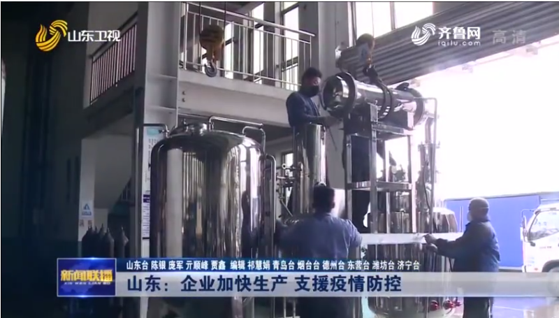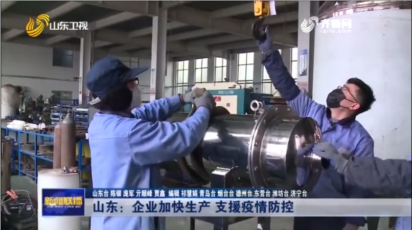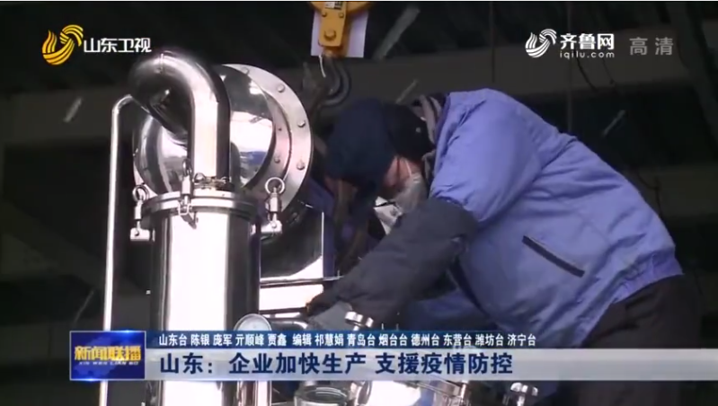 中共中央宣傳部學(xué)習(xí)強(qiáng)國學(xué)習(xí)平臺(tái)和山東衛(wèi)視新聞聯(lián)播報(bào)道我公司為疫區(qū)趕制急需藥物生產(chǎn)設(shè)備